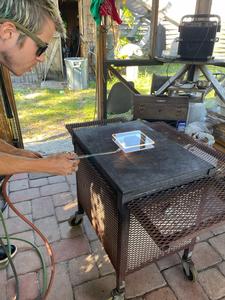 Dr Sarah Hieronymus and her daughter, Judy are photographed in Sparta, Georgia beside a scalar light cosmic pipe. The cosmic pipe is installed in the ground thereby broadcasting scalar light into the topsoil of a farm or tree orchard in order to re-mineralize the soil and disassemble toxic chemicals such as pesticides.